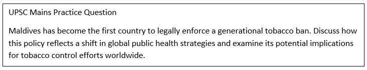 Context: Recently, the Maldives has become the first country in the world to impose a “generational” ban on smoking, preventing individuals born on or after January 1, 2007 from purchasing, using or selling tobacco in all its forms.